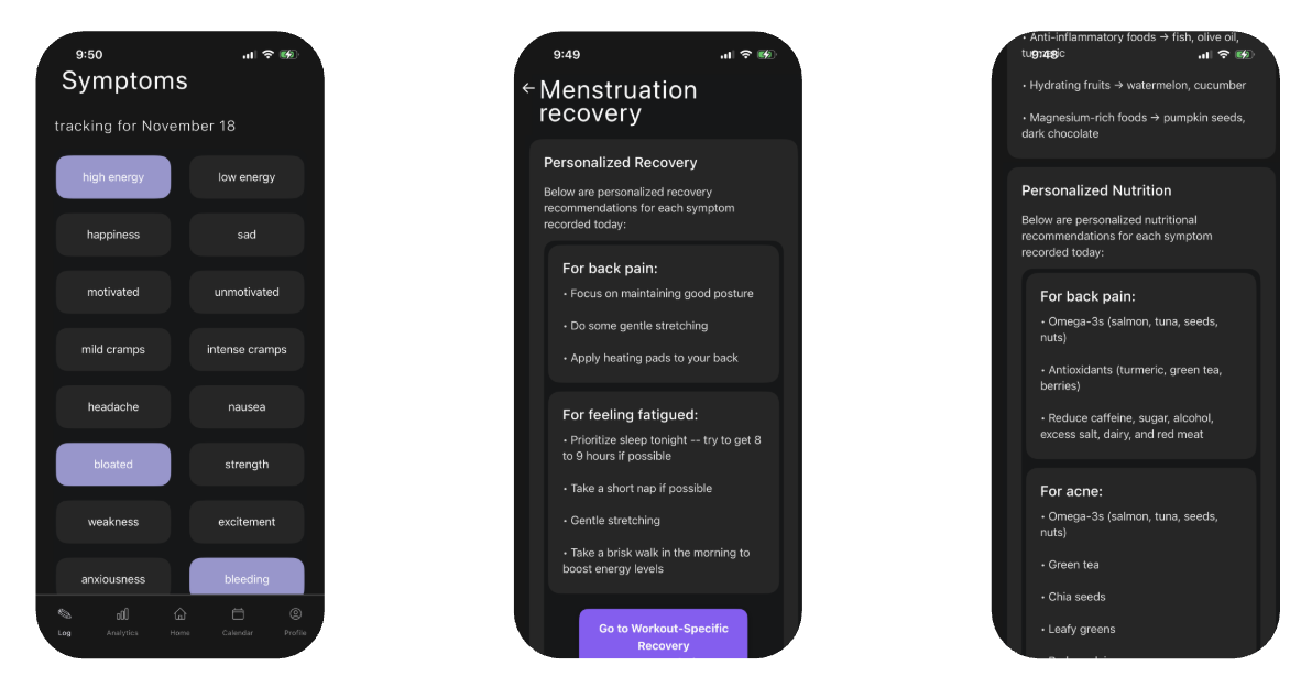 Our intuitive app gives you instant personalized recommendations to improve your performance based on your menstrual cycle.
